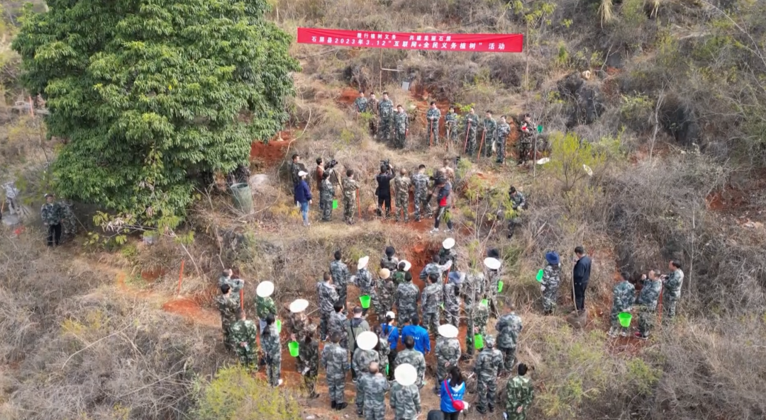 3月12日,石屏县在异龙湖北岸面山举行2023年“3·12互联网+全民义务植树”活动。县委书记张鹏程,县委副书记王虎,县政协主席周瑞等县领导,县绿化委员会成员单位负责人,异龙镇、宝秀镇、坝心镇主要领导,青年志愿服务队队员,县林草局相关人员参加活动。