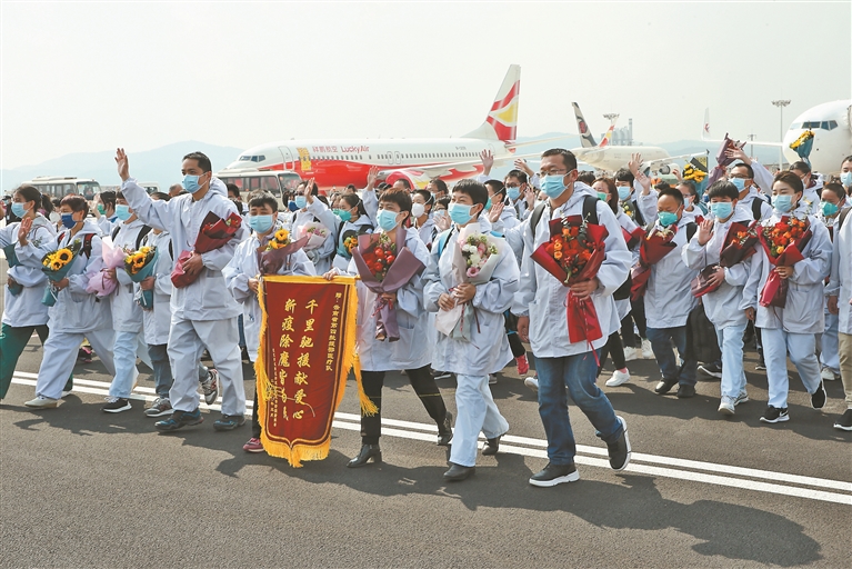 “我们在武汉前线战斗,得知家乡疫情防控取得很好成效,也备受鼓舞。”医疗队员们表示,集中休整后,将返回岗位,尽职工作,为夺取疫情防控阻击战的最后胜利继续奋斗。