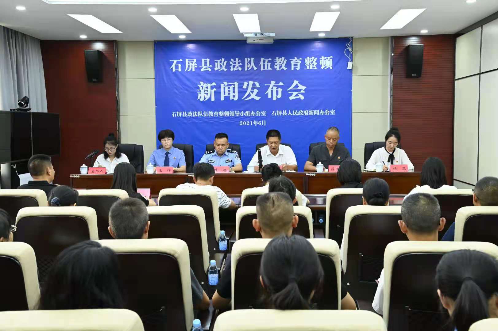 6月24日,石屏县政法队伍教育整顿新闻发布会在县检察院视频会议室召开,县级各政法单位相关负责人出席发布会;5家县级新闻媒体及政法队伍教育整顿领导小组成员单位分管领导参加发布会。