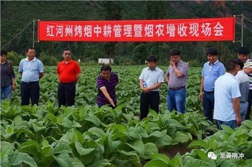 6月9日,全州烤烟中耕管理暨烟农增收现场会在哨冲镇落水洞村委会核心集中连片种植区召开,红河州烟草公司及各县市分公司相关领导、哨冲镇相关领导及部分烤烟种植示范农户参加了现场会。
