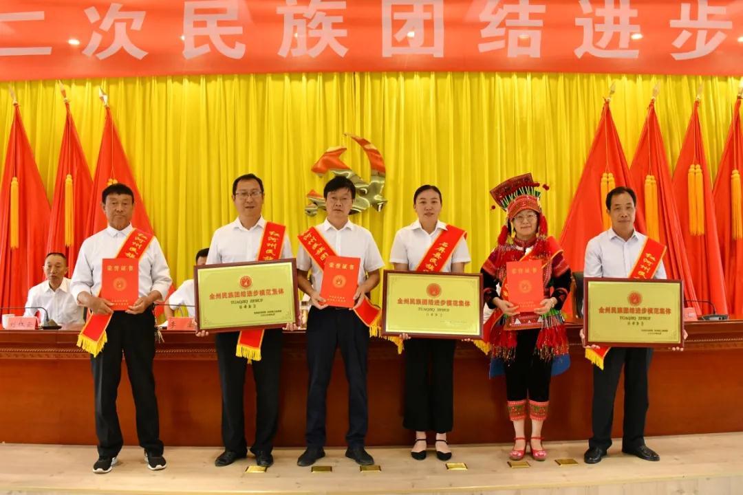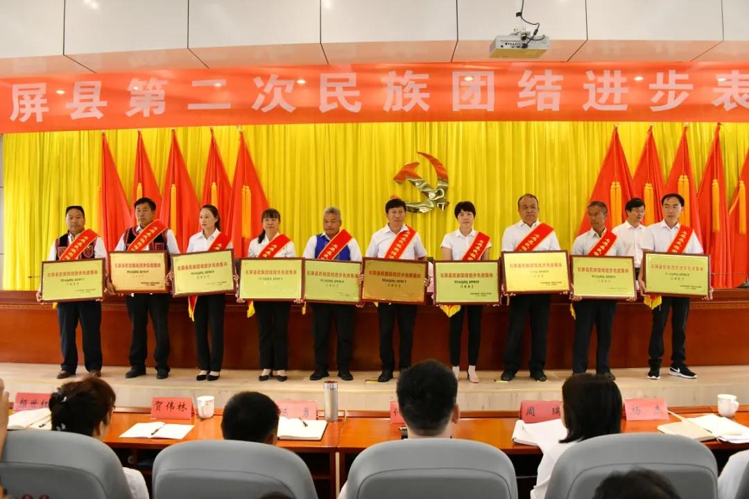 参会领导向受州委、州政府表彰的民族团结进步模范集体代表和模范个人代表颁发了奖牌和证书,向县委、县政府表彰的民族团结进步先进集体和先进个人进行了颁奖。