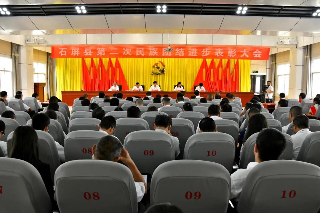 5月7日,石屏县召开第二次民族团结进步表彰大会,县委书记张鹏程,县委副书记、县长张秋红,县委副书记李宏,县人大常委会主任张越松,县政协主席刘红云等县领导及相关部门负责人,受表彰的模范集体代表和模范个人代表,先进集体主要领导和先进个人参加会议。