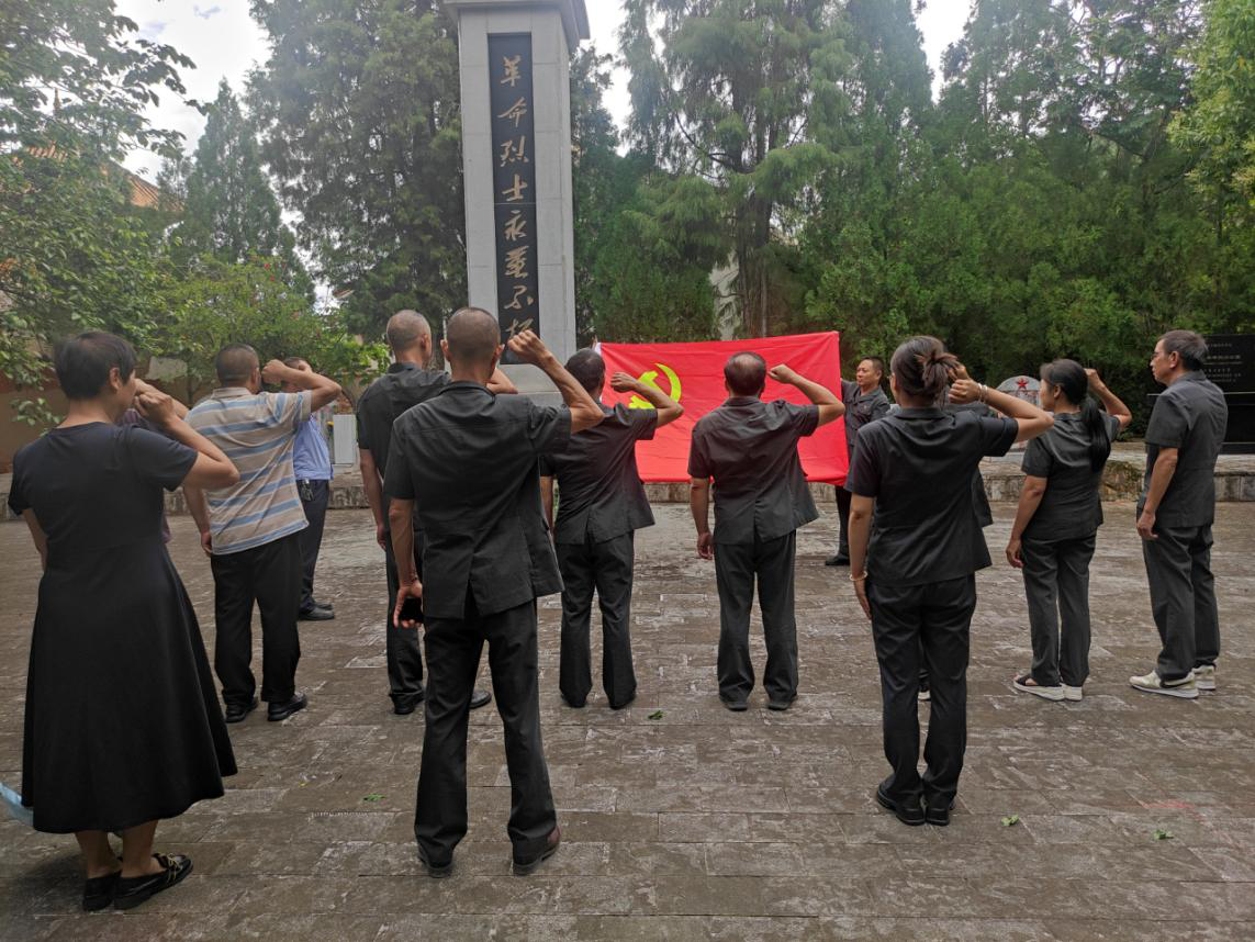 随后,全体党员前往宝山烈士陵园进行了祭祀,活动过程中,在鲜红的党旗前,全体党员整齐列队,共同对着党旗重温入党誓词,庄严承诺。