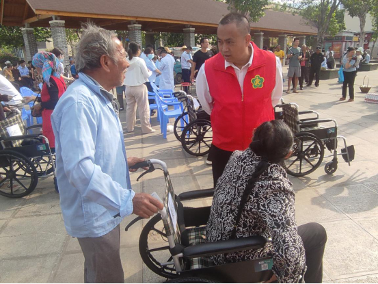 活动现场,到场领导向全县15000余名残疾人及亲属致以亲切慰问,轮椅受赠家属代表同志发言。本次活动共发放宣传资料、手提袋等1000余份,为残疾人免费发放成人轮椅130辆、坐厕椅35个、助行器10台、腋下拐杖71根、单手杖20根、三脚手杖102根;为视力残疾免费发放盲杖20根;为全县截肢残疾人,免费装配假肢35人;为残疾儿童量身定制矫形器9个。