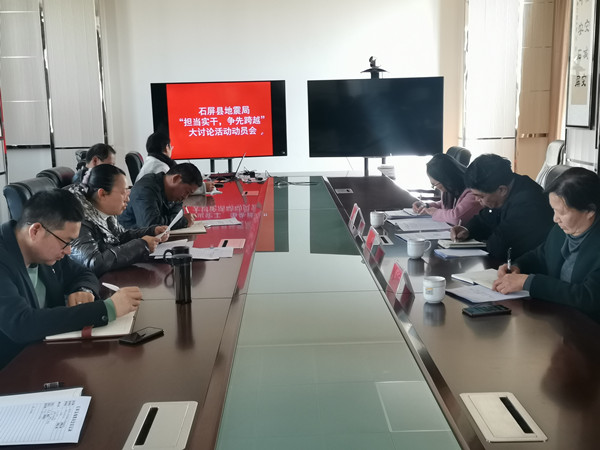 县地震局党组书记、局长李园传达学习了石屏县“担当实干 争先跨越”大讨论活动动员大会精神并作动员讲话。李局长强调,全体干部职工要切实提高政治站位,深刻认识开展大讨论活动是工作所需、发展所系、群众所盼,深刻领会开展大讨论活动的目的意义、基本要求,在思想上高度重视、认识上高度统一、行动上高度自觉,以对标先进和履职担当为突破口,增强“八项本领”,提高“七种能力”,实现“六个做到”。努力形成干事创业新激情、能力水平新突破、工作质量新提升,在防震减灾领域创一流、争先进的氛围。立足工作实际,铆足干劲,全力以赴确保圆满完成年度目标任务,以防震减灾工作取得的实际成绩来检验大讨论活动的成效。