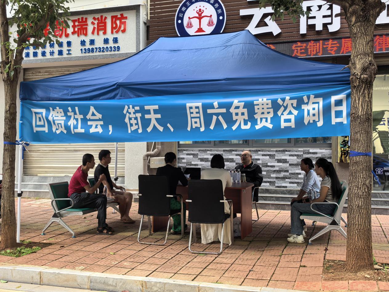 每逢街天,在石屏县异龙镇钟秀街延长线的街道一角,一个特殊的“摊位”总会准时出现。没有商品陈列,只有“免费法律咨询”的醒目标识和几位耐心解答的律师。这并非一次性的普法活动,而是云南王平律师事务所常态化运营的一项创新服务——“街天法律摊”,它在街天和周六由执业律师免费为过路群众开展法律咨询活动。