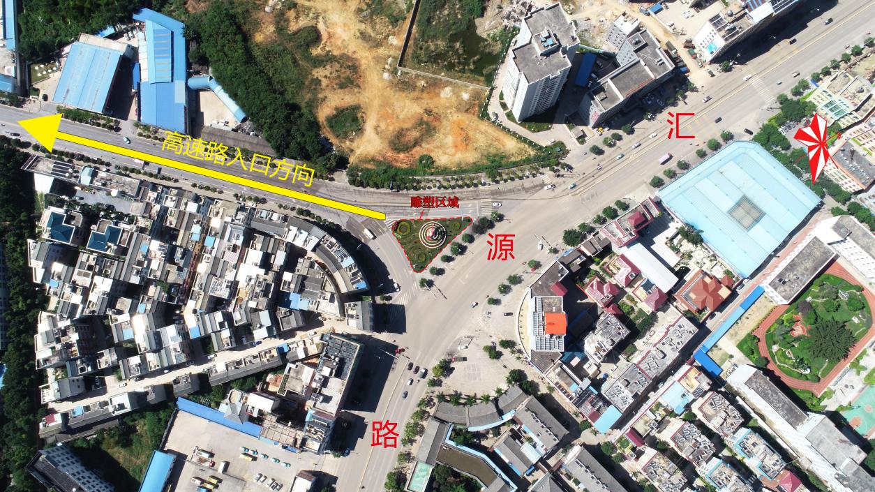 高速公路收费站入城道路与汇源路交叉处三角地带。