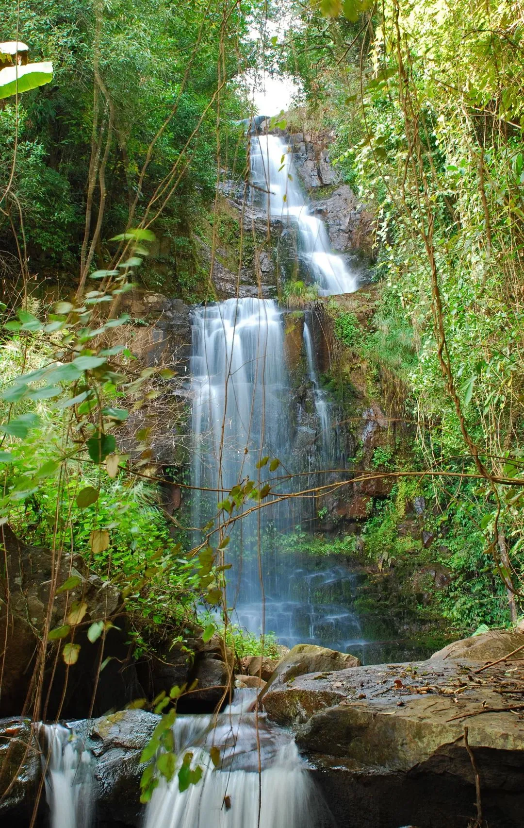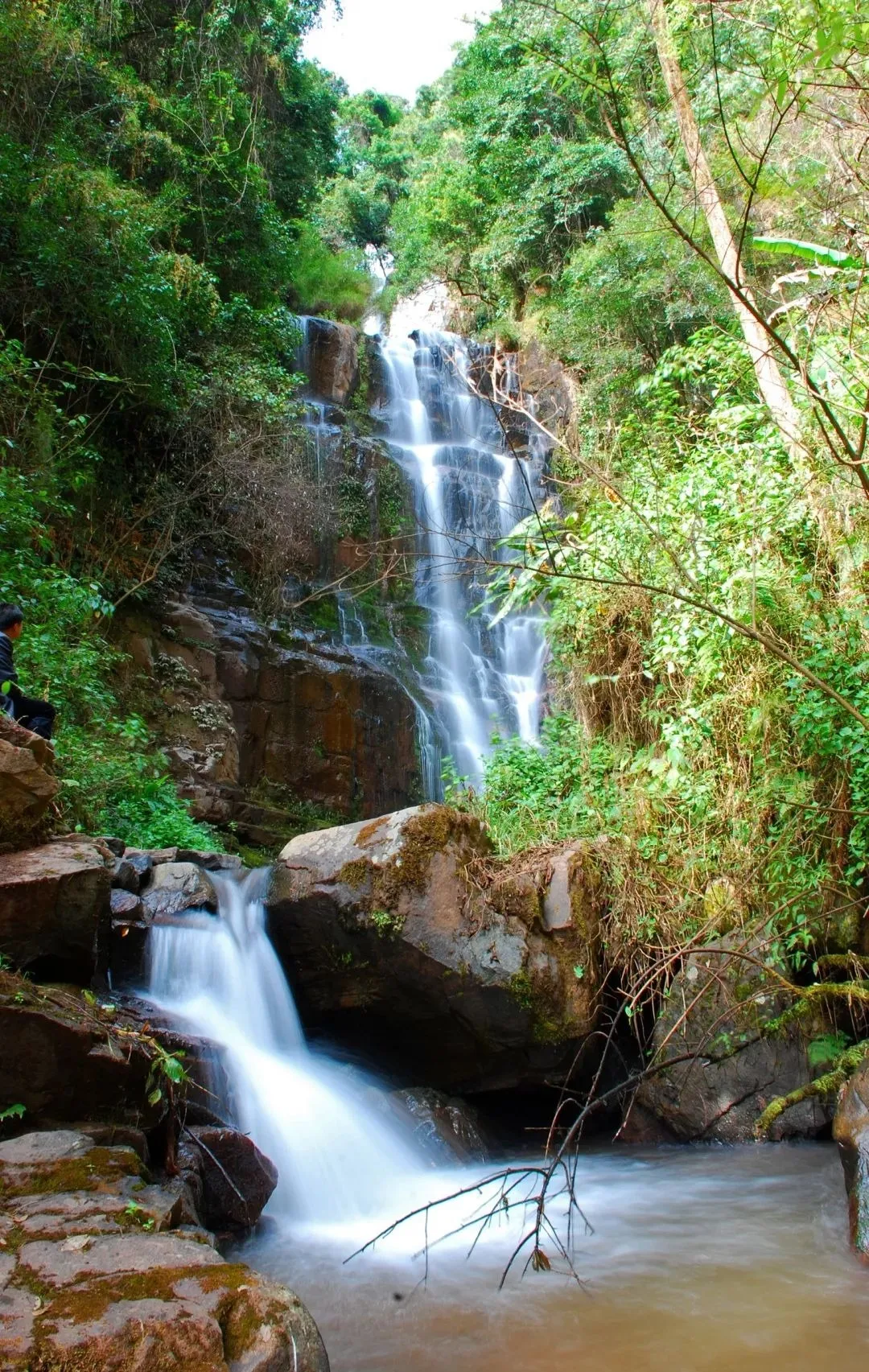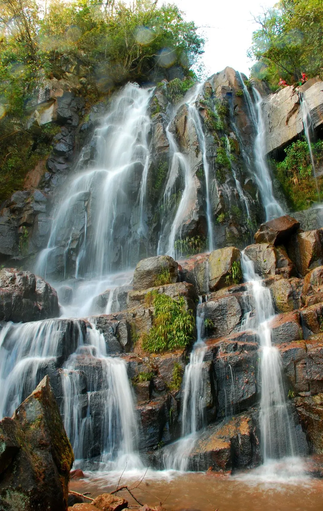 石屏县昌明九台瀑布位于龙武镇昌明村东南方向,深藏在茂密的原始丛林峡谷之中,海拔2070.00米,年平均气温15.50℃,年降水量770.00 毫米,属于大桥河的一条主要支流,瀑布最高落差达到40余米,形成各具特色的瀑布群,由于瀑布发源地与大桥河落差数百米,河道狭长所以水流终年不息。