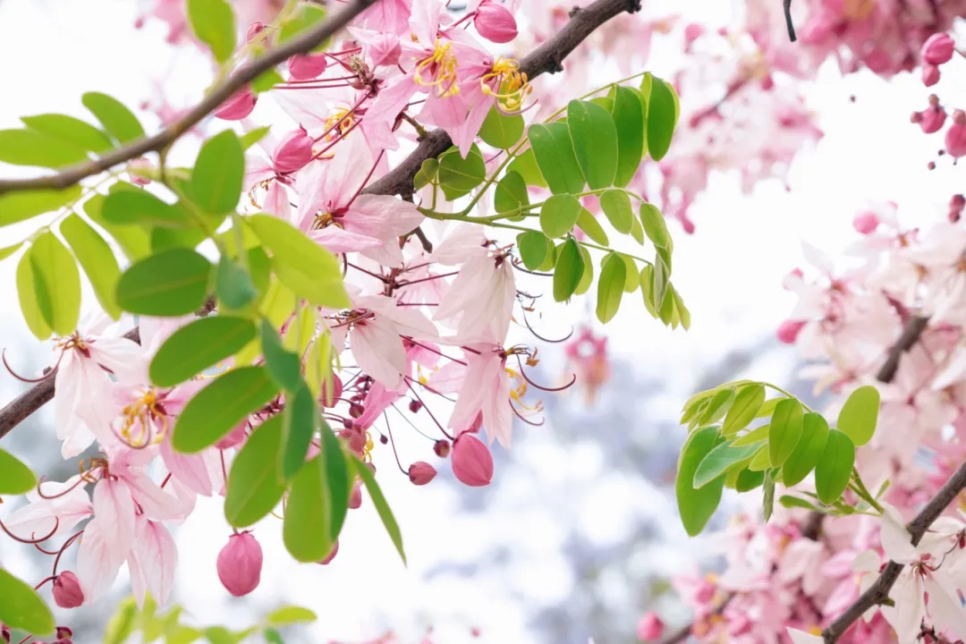 粉瓣金蕊的神黄豆花恣意盛放