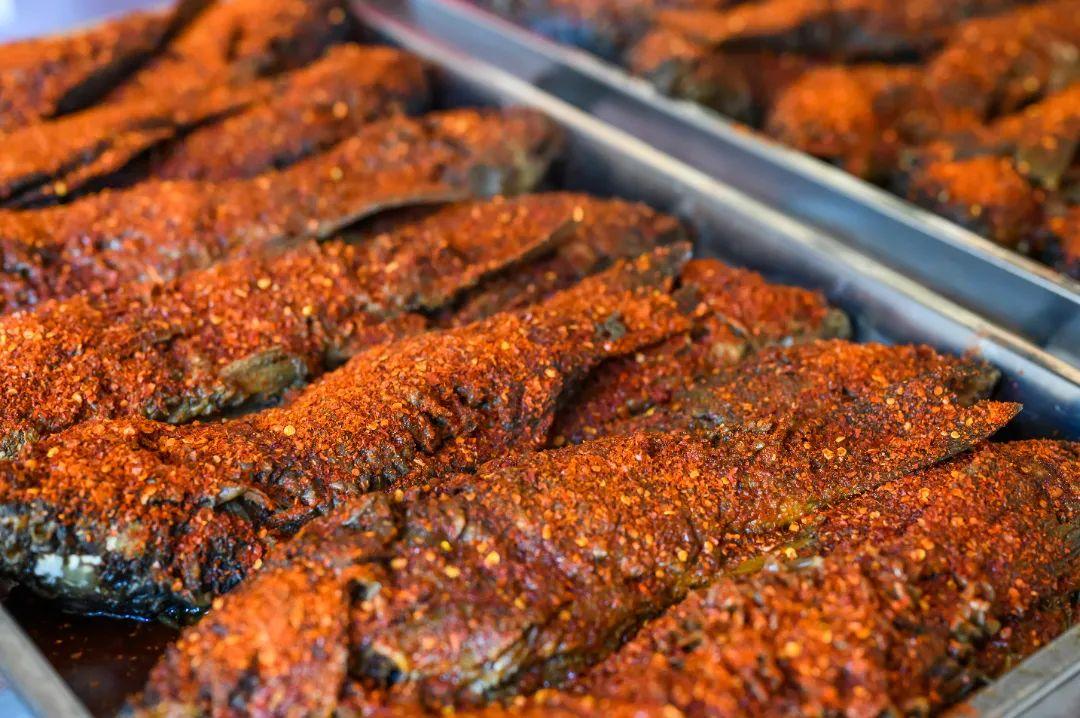 石屏八面煎鱼,一鱼八面皆焦香!“八面”分别是:两面鱼肚腩、两面脊背、两面鱼头、两面鱼尾。