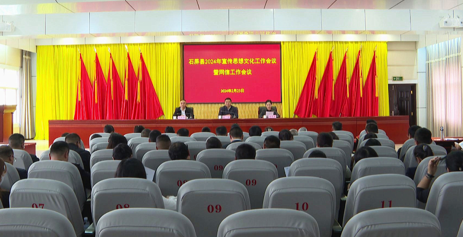 2月23日,石屏县召开2024年宣传思想文化工作会议暨网信工作会议。县委书记张鹏程作出批示,县委副书记王虎出席会议并讲话,县委常委、县委宣传部部长龙艺文主持会议。