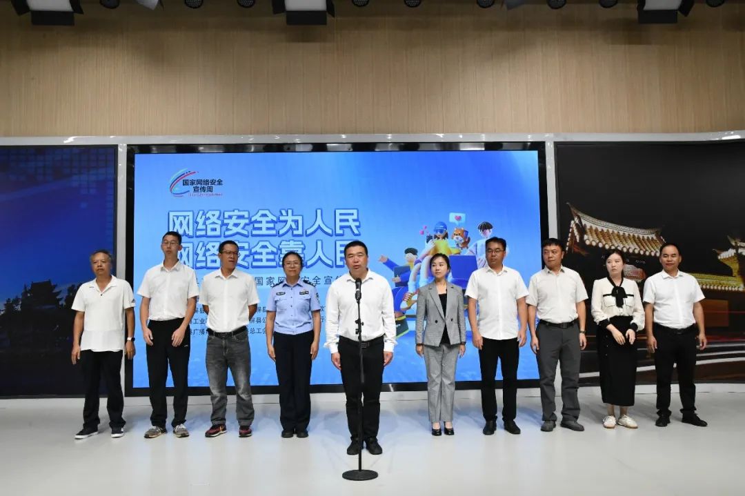 在县融媒体中心演播大厅的线上活动现场,与会领导共同启动了石屏县2023年国家网络安全宣传周活动。