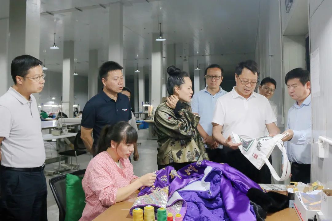 赵瑞君一行在龙朋镇西嫫文化刺绣工厂调研