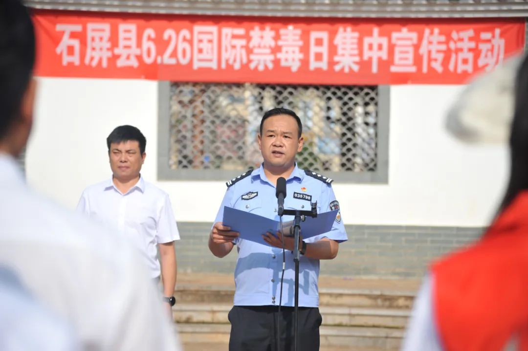 首先由朱超同志致辞,他指出,禁毒工作事关国家安危、民族兴衰、人民福祉。长期以来,石屏县委、县人民政府始终把开展禁毒斗争作为平安建设的主要内容、基础工作和民心工程,坚持主动出击、依法治理、重拳打击,全县禁毒工作取得了明显成效。同时,我们也要清醒地认识到禁毒工作面临的形势和挑战,坚持久久为功,把禁毒工作作为一项系统工程来抓,各级各部门齐抓共管,社会各界广泛参与,形成对毒品“人人喊打”的良好氛围。在此,也呼吁大家,积极行动起来,投身禁毒斗争,坚决做到珍爱生命,拒绝毒品,自觉抵御毒品的侵害,夺取新时代禁毒人民战争新胜利。随后,杨云勇同志宣布集中宣传活动正式启动。