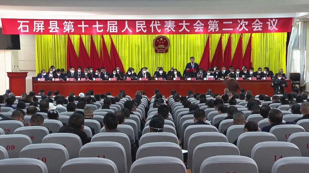 1月16日下午,石屏县第十七届人民代表大会第二次会议举行第二次全体会议。县委书记张鹏程,县委副书记、县长张秋红,县委副书记王虎,县人大常委会主任李宏,县政协主席周瑞等领导出席会议并在主席台就座。李宏主持会议并向大会作县人大常委会工作报告。会议听取县人民法院工作报告和县人民检察院工作报告。书面审查了县十七届人大六个专门委员会工作报告。