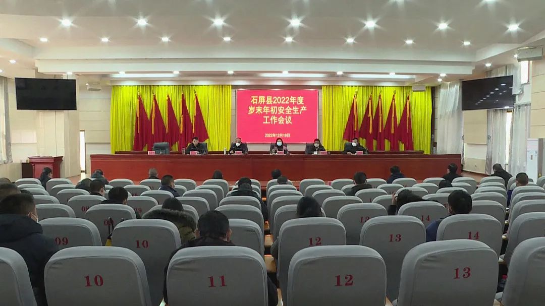 12月19日,石屏县召开2022年岁末年初安全生产工作会议。县委副书记、县长张秋红,红河州水利局副局长、异龙湖管理局局长吴超雄,副县长彭继伟、朱超、刘永,县级相关部门及重点企业负责人参加会议。