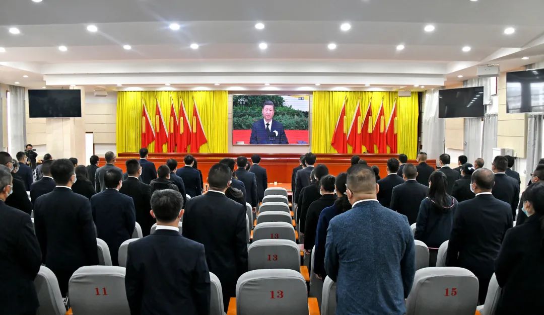 在县政府六楼会议室,县委常委,县人大常委会,县政府,县政协领导班子成员,县委和县级国家机关各部委办局、各人民团体、各企事业单位主要负责人认真收看了追悼大会直播。