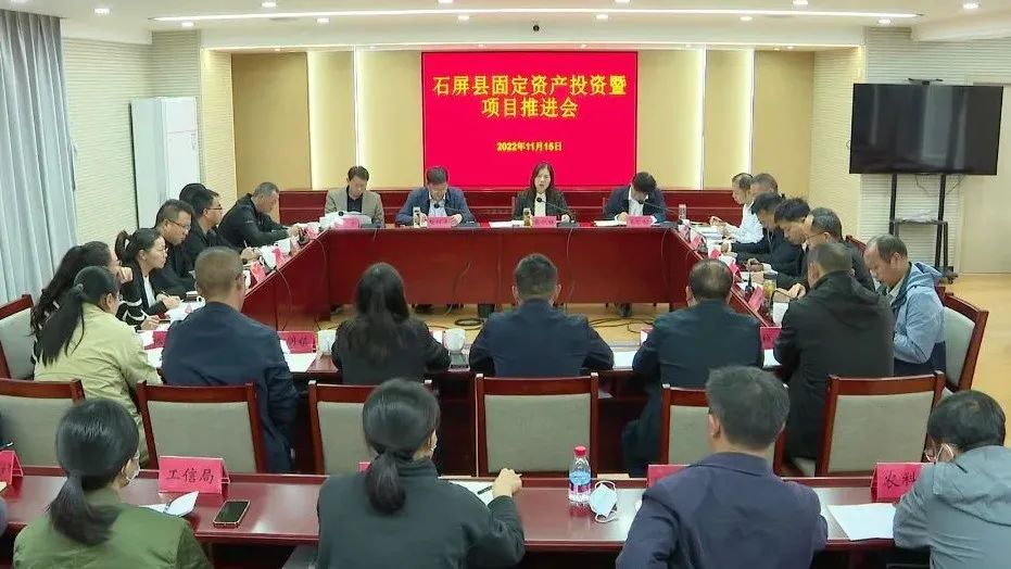 11月15日,石屏县召开固定资产投资暨项目推进会。县委副书记、县长张秋红,副县长赵绍青、王哲枫、刘永,以及相关部门负责人,各乡镇主要领导参加会议。会上,通报了全县1—10月固定资产投资情况,预计完成投资164.7亿元,增速3.3%。