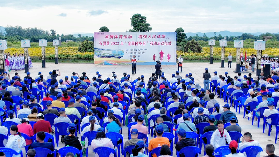 8月8日上午,石屏县在异龙湖国家湿地公园西岸湿地广场启动2022年 “全民健身日”活动。号召广大人民群众行动起来,人人健身、天天健身、科学健身,以更加饱满的热情、更加充沛的精力投入工作和生活。