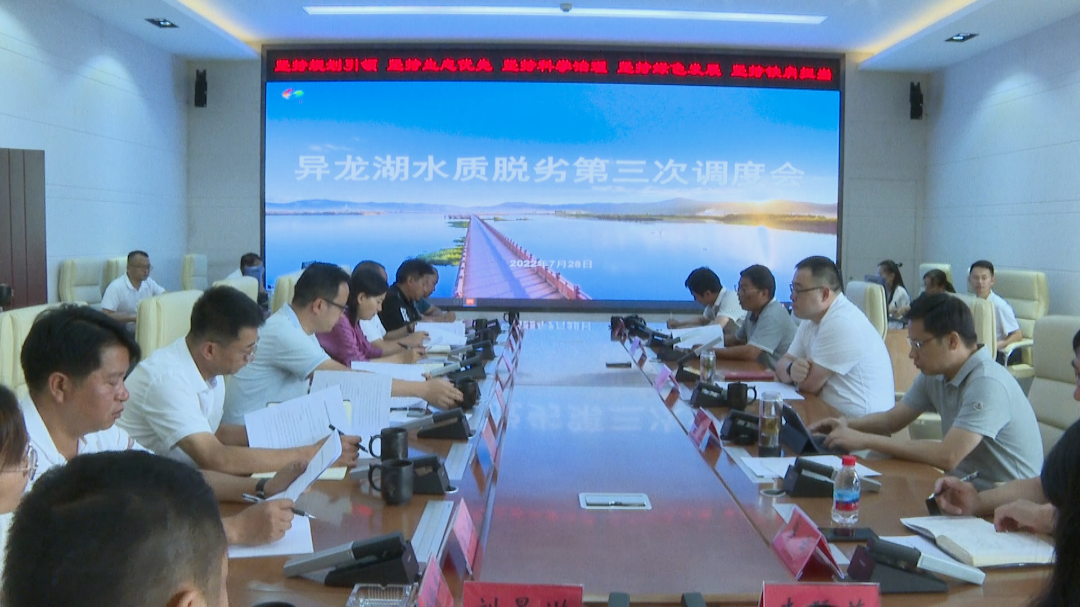7月28日,红河州异龙湖“湖泊革命”攻坚战指挥部召开异龙湖水质脱劣第三次调度会议。州委常委、州委统战部部长朱毅,副州长梁凌云,县委副书记、县长张秋红等州县相关领导参加会议。