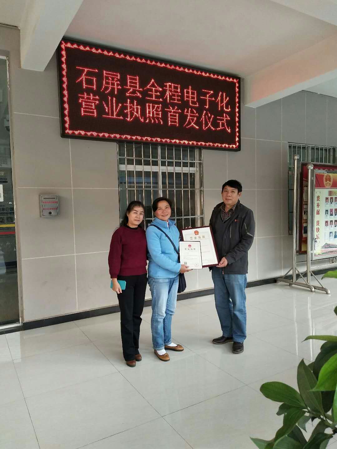 近日,石屏县市场监督管理局颁发了第一份电子营业执照,此举标志着我县实现了企业登记全程电子化。