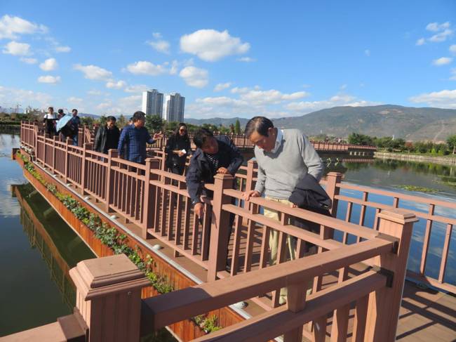 为进一步落实河长制工作,11月30日下午14:40,州人大督查组第五组赴石屏督查河长制工作,州人大督查组组长孙广益及其他督查人员在县人大常委会副主任刘海燕,县政府副县长文武,县湖管局局长李桥光及其他人员的陪同下深入异龙湖西岸湿地开展调研,文副县长介绍异龙湖国家湿地公园规划建设情况。目前西岸湿地已建设完成,成为石屏生态建设形象展示窗口,同时恢复“三岛晨游,焕文烟雨”两个历史景观,形成集文化、休闲、康体、科普生态旅游为一体的高原湿地文化景观区。