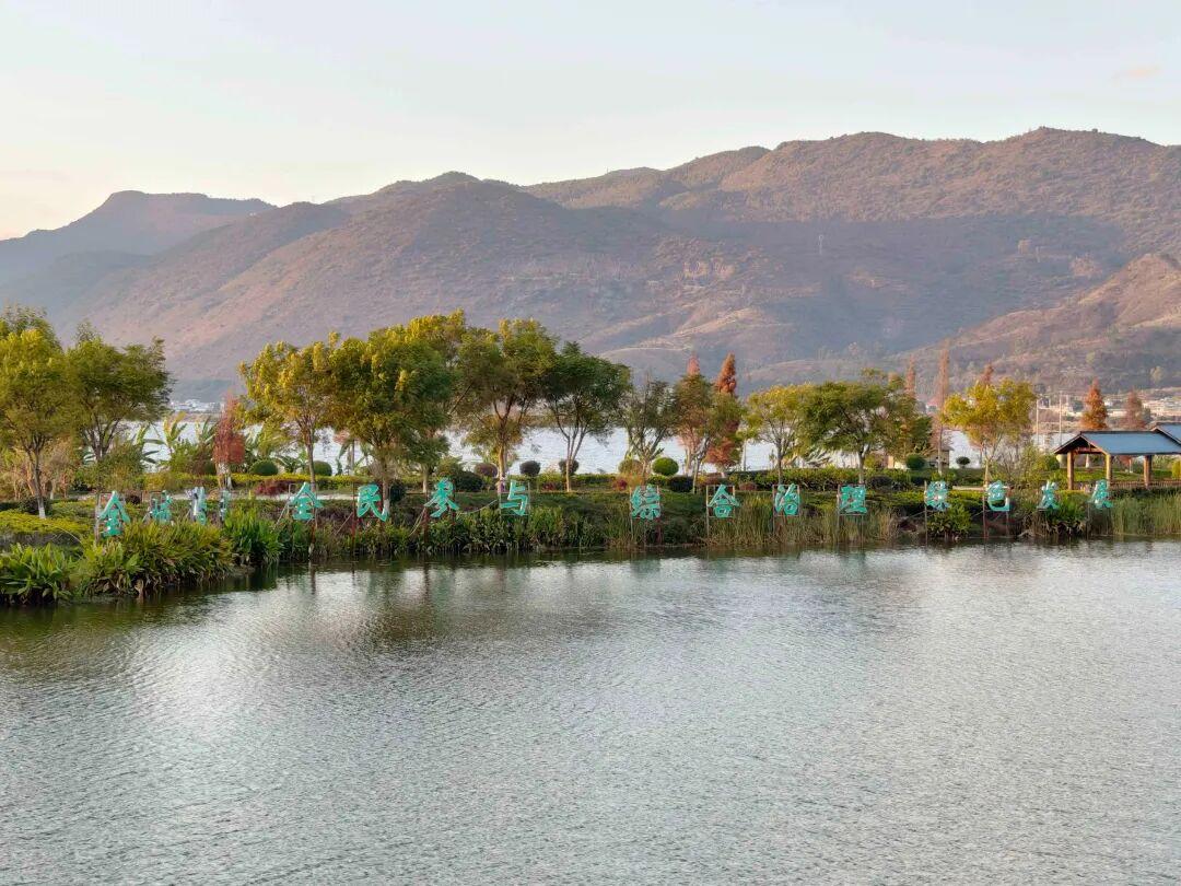 坝心社区湖畔堤坝上那条“全域治理、全民参与、综合治理、绿色发展”的标语,体现了当下石屏县在异龙湖流域以高水平保护推进绿色高质量发展的实践。
