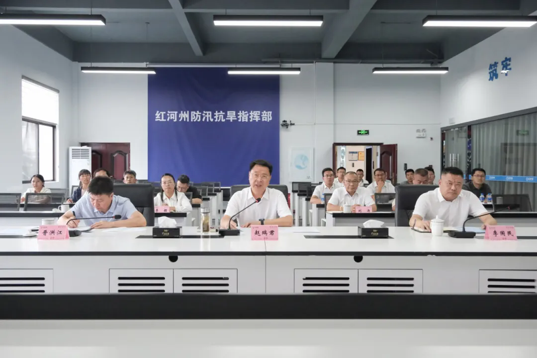 在州气象局指挥中心,赵瑞君认真听取全州气象服务工作、雨情雨量分析等情况汇报,看望慰问一线值守人员,并通过视频连线的方式,随机调度金平县、屏边县、河口县南溪镇、绿春县半坡乡防汛工作。