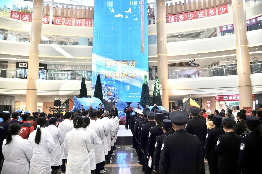 为进一步强化全民反恐意识,激发群众参与反恐怖人民斗争的热情,推进反恐怖宣传教育工作走深走实,在《中华人民共和国反恐怖主义法》颁布八周年之际。12月27日,石屏县在正丰广场开展“全民反恐 共创平安”反恐怖宣传教育活动启动仪式。
