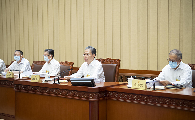 6月26日上午,十四届全国人大常委会第三次会议在北京人民大会堂举行第一次全体会议。赵乐际委员长主持。新华社记者 李涛 摄