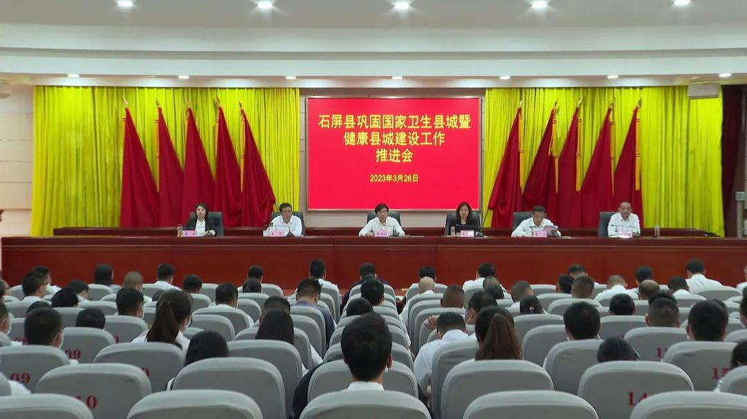 3月26日,石屏县召开巩固国家卫生县城暨健康县城建设工作推进会。县委书记张鹏程出席会议并讲话,县委副书记、县长张秋红主持会议,县委副书记王虎,县人大常委会主任李宏,县政协主席周瑞出席。