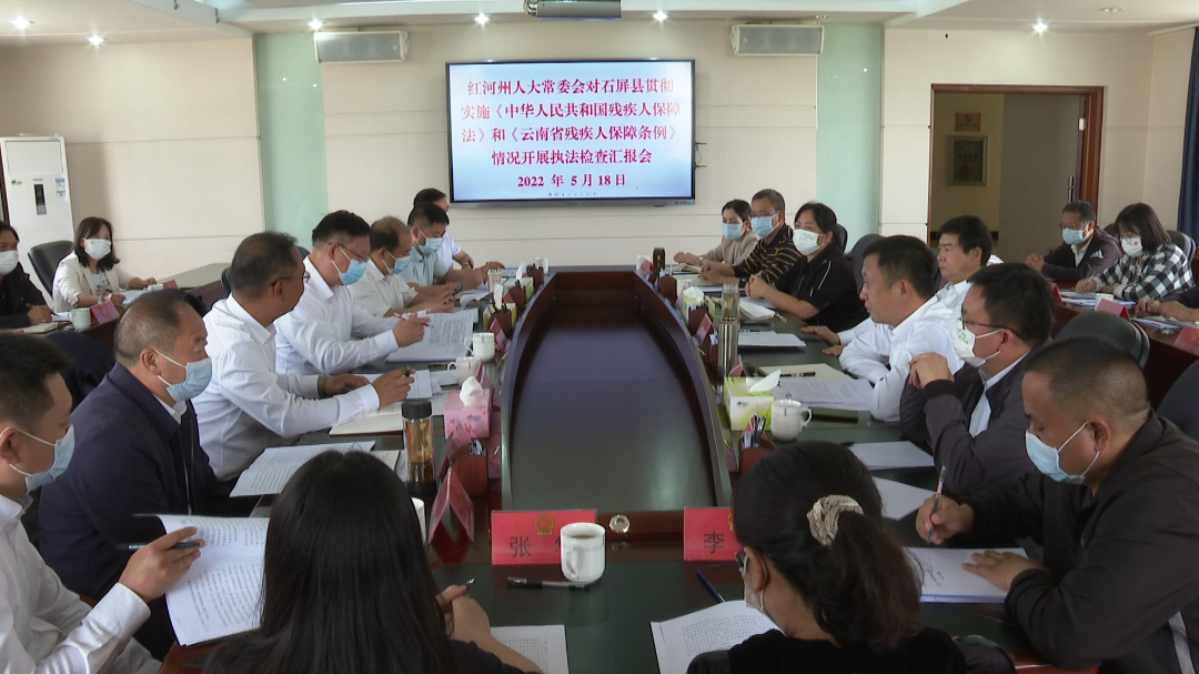 5月18日,州人大常委会副主任向从科率州人大检查组到石屏县对《中华人民共和国残疾人保障法》《云南省残疾人保障条例》贯彻实施情况进行执法检查。县委书记张鹏程,县人大常委会主任李宏,县人大常委会副主任胡连平,副县长彭继伟、赵绍青及州县相关部门负责人陪同调研或参加汇报会。