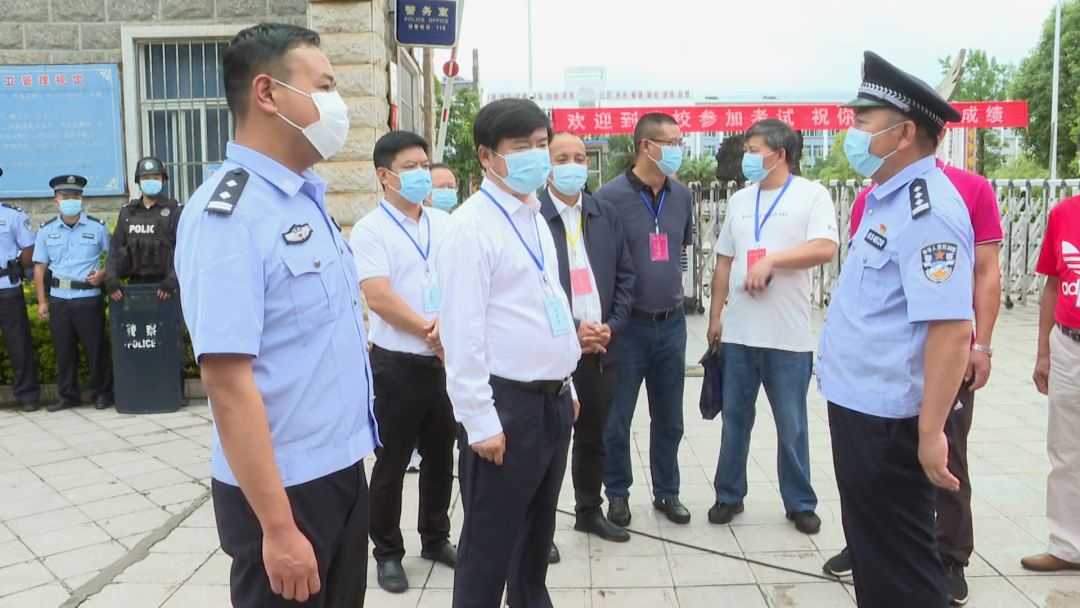 张鹏程一行查看了校园环境、视频监控室、便民服务点、公安执勤、疫情防控等情况,并与相关部门负责人进行交流,认真了解应急预案、安全保密、交通疏导、医务安保等服务保障工作措施落实情况,并向考点监考、巡考和值班工作人员表示慰问。