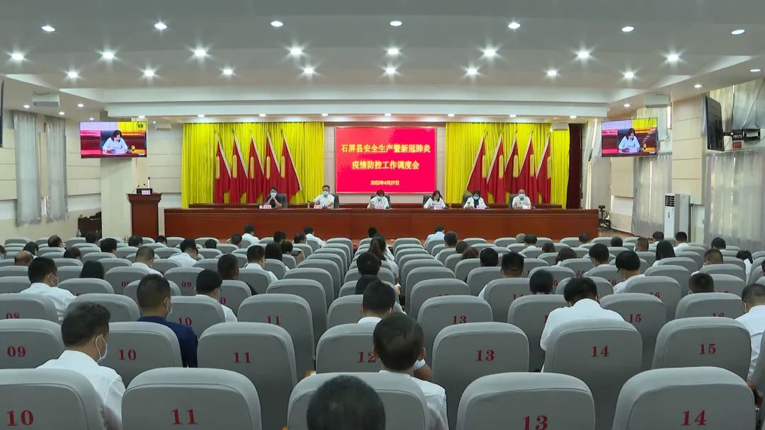 4月27日,石屏县召开安全生产暨新冠肺炎疫情防控工作调度会。县委书记张鹏程出席会议并讲话,县委副书记、县长张秋红,县人大常委会主任李宏,县政协主席周瑞等县领导,以及相关部门负责人在石屏主会场参加会议,各乡镇设分会场,并以视频形式参加会议。