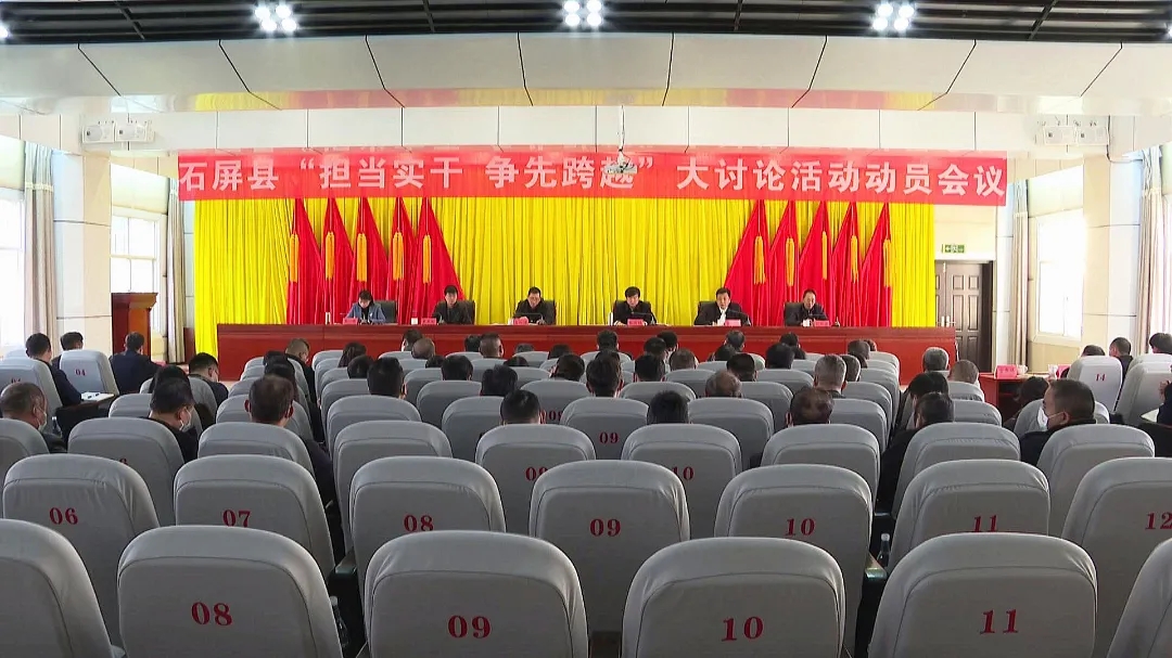 12月17日,石屏县召开“担当实干 争先跨越”大讨论活动动员大会。县委书记张鹏程出席会议并作动员讲话,州委党史学习教育第五巡回指导组组长高加鸿到会指导,县委常委、县人大常委会、县政府、县政协领导班子成员,以及各有关部门负责人、各乡镇领导参加会议。