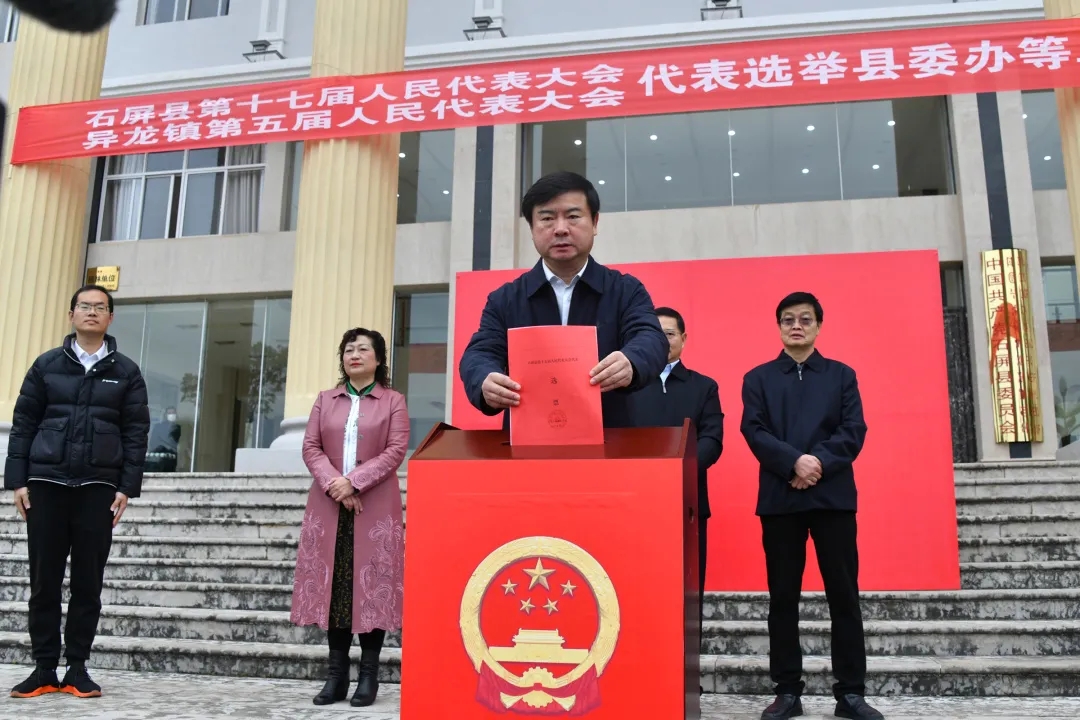 12月20日是石屏县县乡(镇)两级人民代表大会代表选举日,按照法定程序选举产生了县第十七届人民代表大会代表和各乡镇新一届乡(镇)人民代表大会代表。州人大常委会主任普绍忠到会指导,县委书记张鹏程等县四班子领导以普通选民身份参加投票选举。