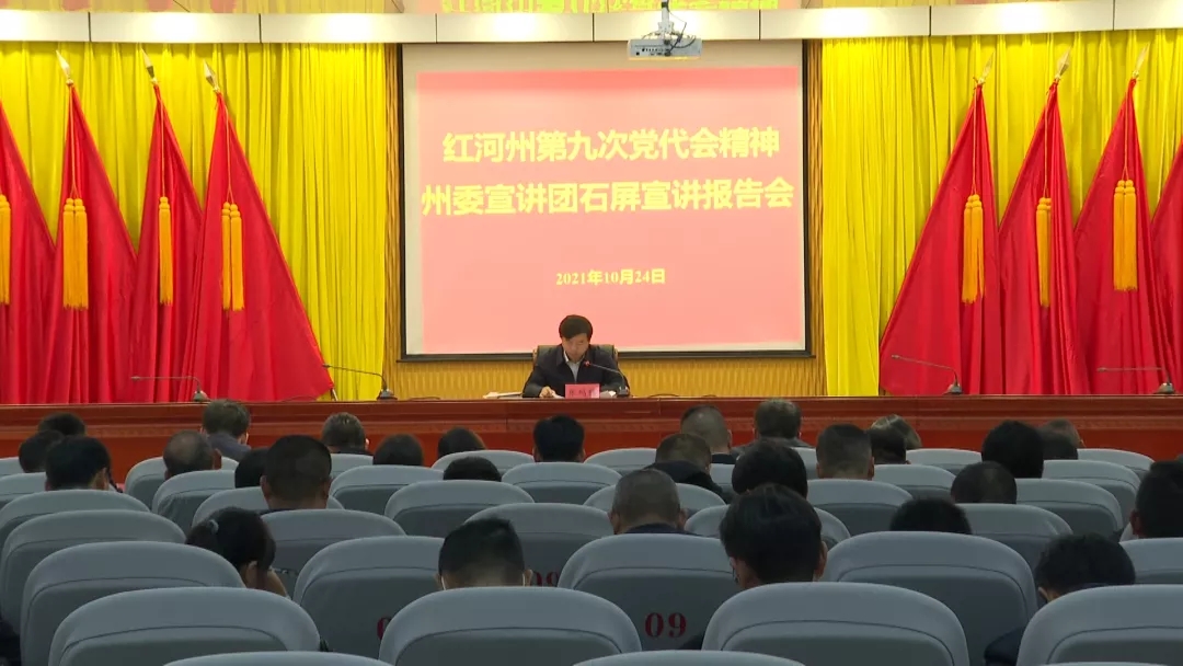 10月24日,中国共产党红河哈尼族彝族自治州第九次代表大会精神州委宣讲团石屏宣讲报告会举行。州委宣讲团成员、县委书记张鹏程主持会议并作要求。县委副书记、县长张秋红等县领导,以及县级各部门、有关单位负责人,各乡镇党政主要领导等参加报告会。