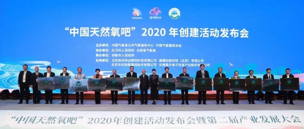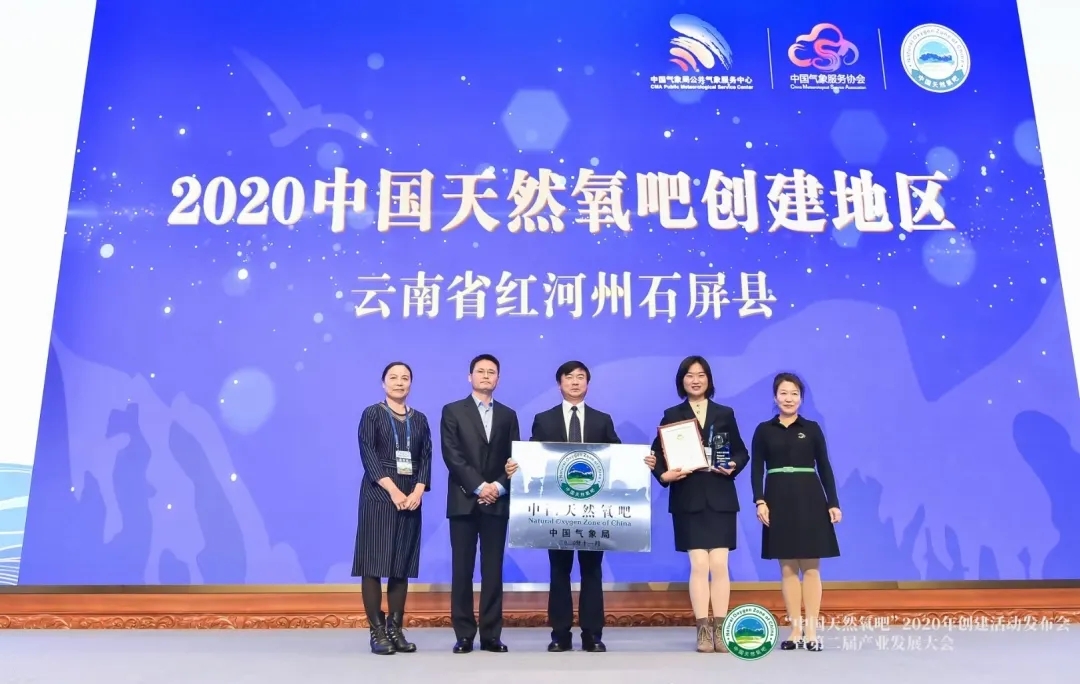 11月24日上午,“中国天然氧吧”2020年创建活动发布会暨第二届产业发展大会在弥勒市太平湖森林小镇国际会展中心举行。来自国家气象部门的领导专家学者,各创建地区代表等500多人出席活动。授牌仪式上,红河州石屏、蒙自、个旧等12个县市分别荣获“中国天然氧吧”称号并分别授牌。自此,加上已于2019年创建成功的屏边县,全州所有县市均成功创建为“中国天然氧吧”。