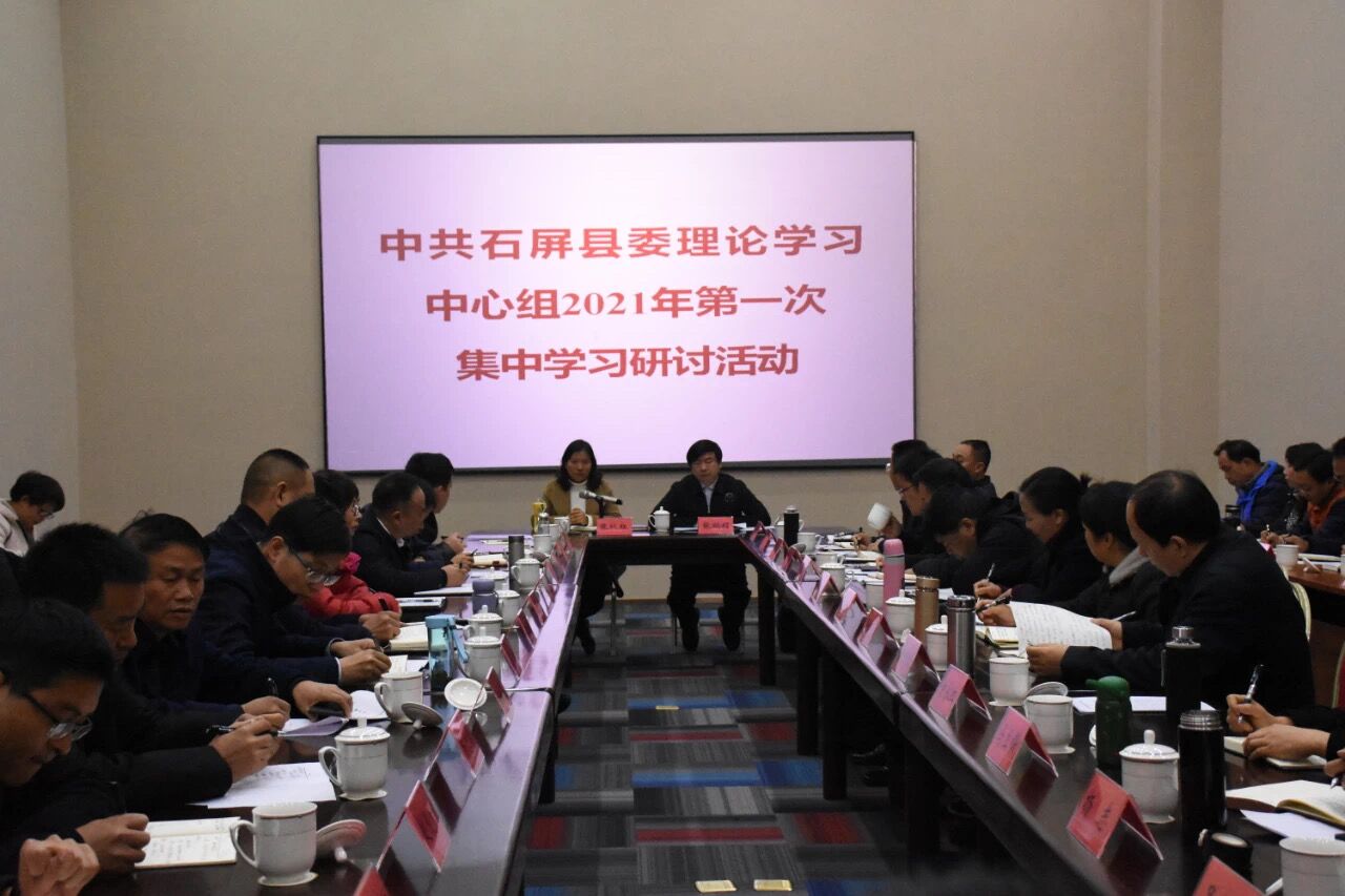 1月14日至15日,中共石屏县委理论学习中心组举行2021年第一次集中学习研讨活动,县委书记张鹏程,县委副书记、县长张秋红,县人大常委会主任张越松,县政协主席刘红云等县领导,以及县委理论学习中心组成员,县直机关各部门负责人,各乡镇党委书记、乡镇长参加学习研讨活动。