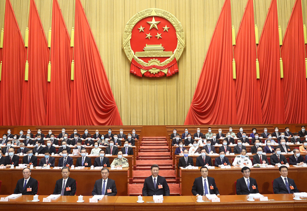 习近平、李克强、汪洋、王沪宁、赵乐际、韩正、王岐山和大会主席团成员在主席台就座。