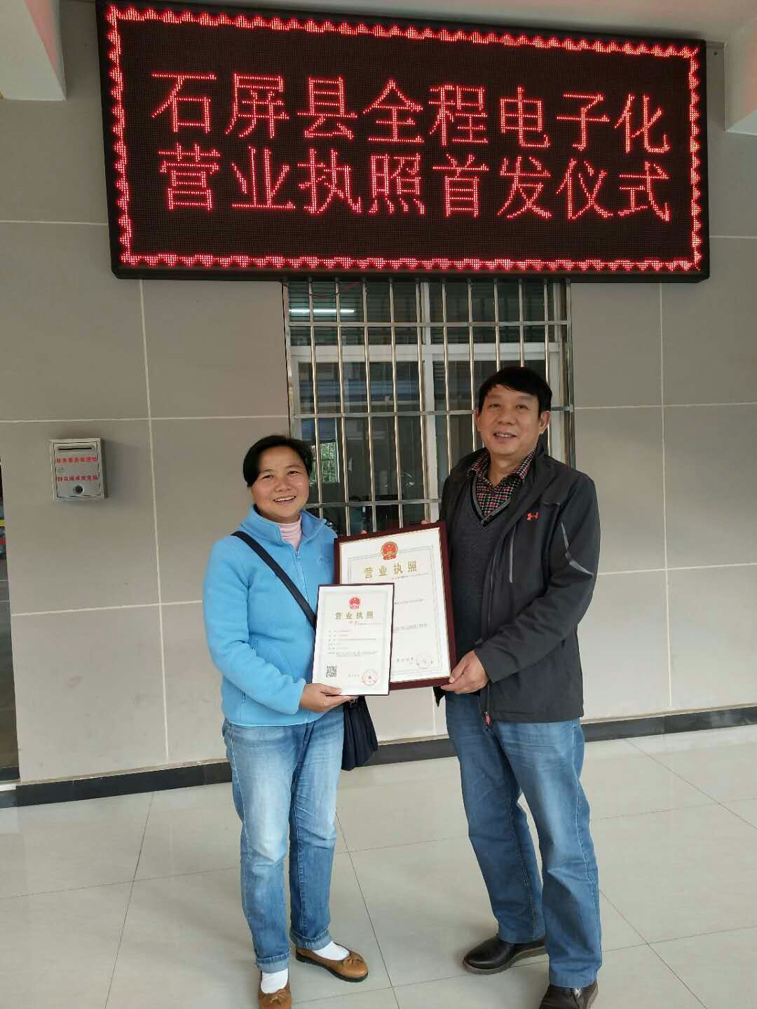 近日,石屏县市场监督管理局颁发了第一份电子营业执照,此举标志着我县实现了企业登记全程电子化。