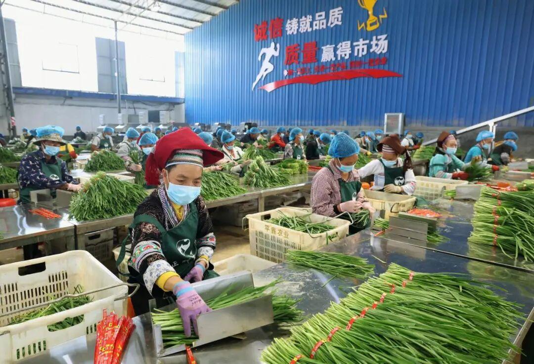 在丘北正辉农业开发有限公司,工人们正在打包韭菜。周灿 摄