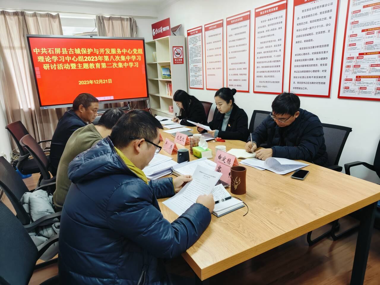 12月21日下午,中共石屏县古城保护与开发服务中心党组开展2023年理论学习中心组第八次集中学习研讨活动暨主题教育第二次集中学习,活动由党组书记、主任董少龙主持。党委(党组)理论学习中心组县级列席旁听第六工作组到会指导。此次专题学习研讨以“发扬斗争精神、应对风险挑战”为主题,传达学习了《“敢于斗争是我们党的鲜明品格”—学习习近平总书记关于发扬斗争精神重要论述》《贯彻总体国家安全观 筑牢国家安全人民防线》等重点学习内容,重点发言人分别围绕学习主题谈了体会和认识。 党组书记、主任长董少龙作研讨总结并要求:发扬斗争精神走好新的赶考之路。中国共产党靠斗争赢得过去,更要靠斗争开辟未来。在“两个一百年”奋斗目标历史交汇点上,我们必须要以习近平新时代中国特色社会主义思想为指导,深入领会习近平总书记关于斗争精神的重要讲话精神,敢于斗争、敢于胜利,以开局就是决战的姿态,响应伟大号召,把党领导下的核心事业继续全面推向前进,为走好实现第二个百年奋斗目标新的赶考之路作出新的更大贡献。 最后,县委常委、县委宣传部部长龙艺文对此次集中学习研讨活动作了旁听点评:一是党组重视,学习主动。县古城保护与开发服务中心坚持把加强和改进党组中心组学习摆在突出位置,紧扣石屏古城保护与开发需要,党组书记、主任董少龙确定主题、审定学习方案、主持集中研讨。其他党组成员及干部职工在抓好自学的基础上,积极参加集体研学,踊跃发言。二是主题鲜明,重点突出、学习效果到位。习近平总书记的重要讲话精神都是精神大餐,非常精辟、经典,尤其目前我国面临国际国内复杂形势,风险挑战俱多,更要发扬斗争精神,防范好化解好各类风险挑战。 龙艺文部长要求:县古城保护与开发服务中心党组一要紧紧围绕石屏古城保护与开发中带有全局性、战略性、前瞻性的重大问题,充分认识发扬斗争精神与防范风险挑战的极端重要性,强化守土有责、守土负责、守土尽责的斗争精神与防范意识。二要增强本领。强化业务专业知识、战略思维、决策水平等,不断加强自身能力建设,提升应对本领。