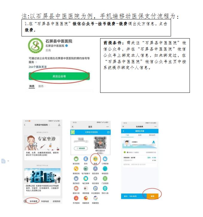 截至2023年9月,石屏县人民医院、石屏县中医医院共2家医疗机构开通了医保移动支付。参保群众无需使用社保实体卡或就诊卡,也无需在窗口排队缴费,通过一部手机即可在线完成医保统筹基金报销、医保个人账户、个人自费一键结算,医保账单一目了然。
