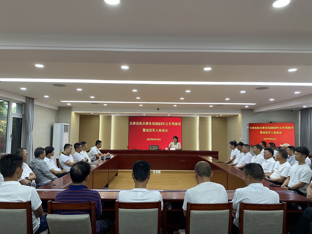 为庆祝中国人民解放军建军96周年,8月10日下午,石屏县机关事务局召开公务用车驾驶员暨退役军人座谈会。局党组书记、局长董少龙参会议并讲话,局党组成员、副局长彭筠杰主持会议。