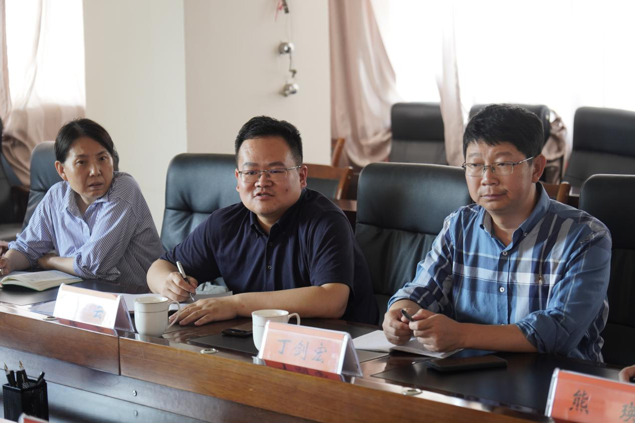 省水利厅调研组组长张云(中)、成员丁剑宏(右)、宋菊萍(左)分别作调研发言