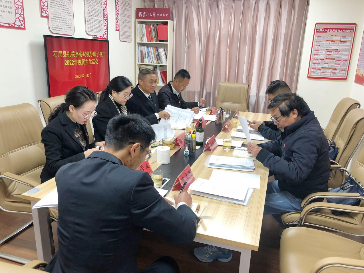 根据《中共石屏县纪律检查委员会 中共石屏县委组织部〈关于召开2022年度县以上党和国家机关党员领导干部民主生活会的通知〉(石组发〔2023〕1号)要求》,石屏县机关事务局于2023年2月15日召开2022年度民主生活会。会议聚焦此次民主生活会主题,联系个人思想和工作实际,认真查摆问题,深刻剖析根源,严肃开展批评和自我批评,提出整改措施,明确努力方向。党组书记、局长董少龙同志主持会议并作总结讲话。县委第五督导组到会指导。
