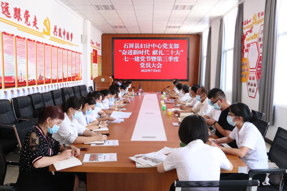 今年是党的二十大召开之年,是进入全面建设社会主义现代化国家、向第二个百年奋斗目标进军新征程的重要一年。为认真落实“三会一课”制度,教育引导广大党员以崭新面貌、一流业绩、更大作为奋进新征程担当新使命,以实际行动为党的二十大献礼。石屏县妇幼保健计划生育服务中心党支部于2022年7月6日下午14:30在党员活动室组织全体党员、预备党员、入党积极分子共计27人,开展了“奋进新时代 献礼党的二十大”建党节活动。