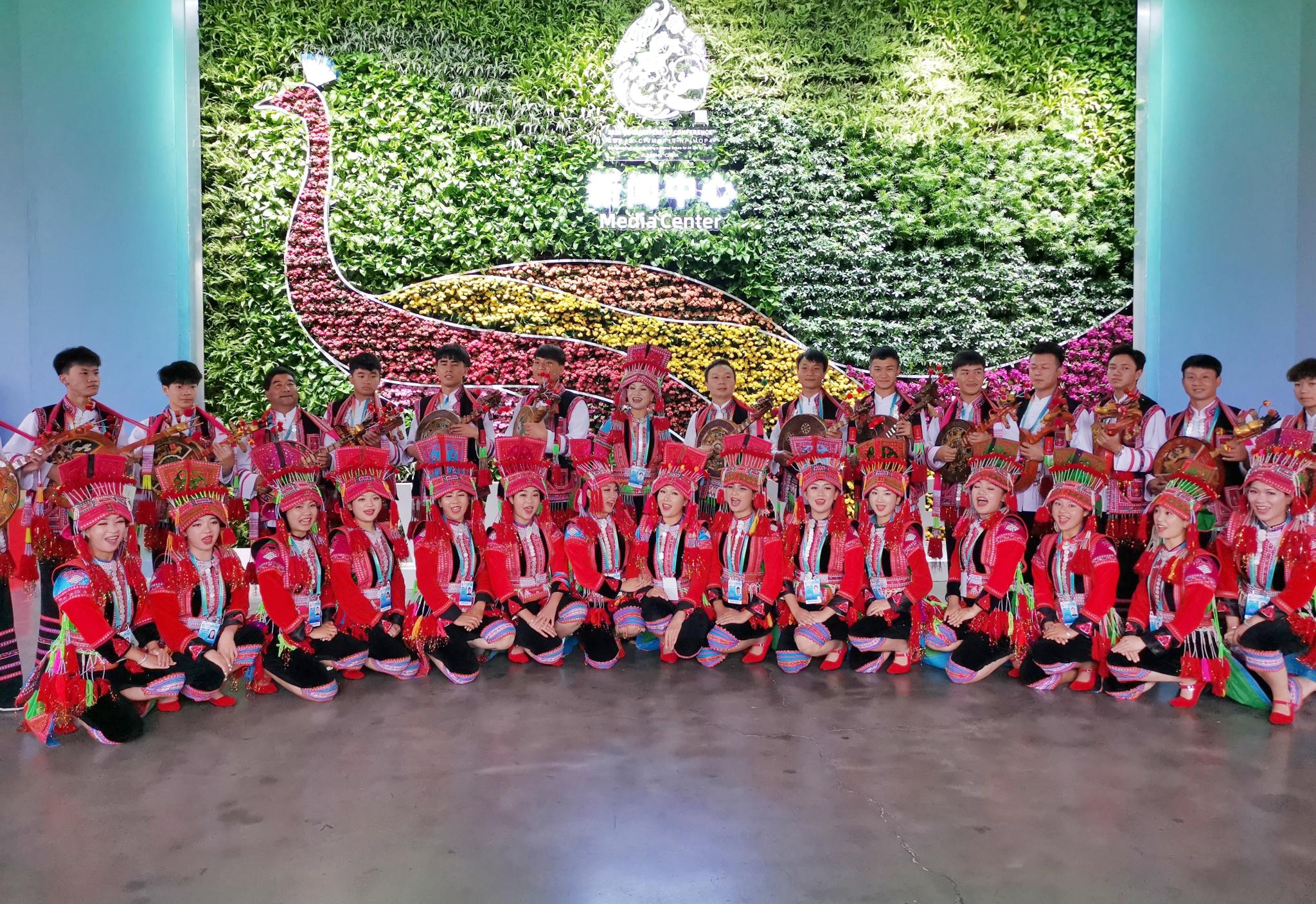 《生物多样性公约》缔约方大会第十五次会议(COP15)开幕式上,来自石屏的李怀秀、李怀福带领师生们登台表演,悠扬的海菜腔、欢快的花腰调赢得阵阵掌声,石屏非遗歌舞的魅力聚焦了世界各国媒体的目光。