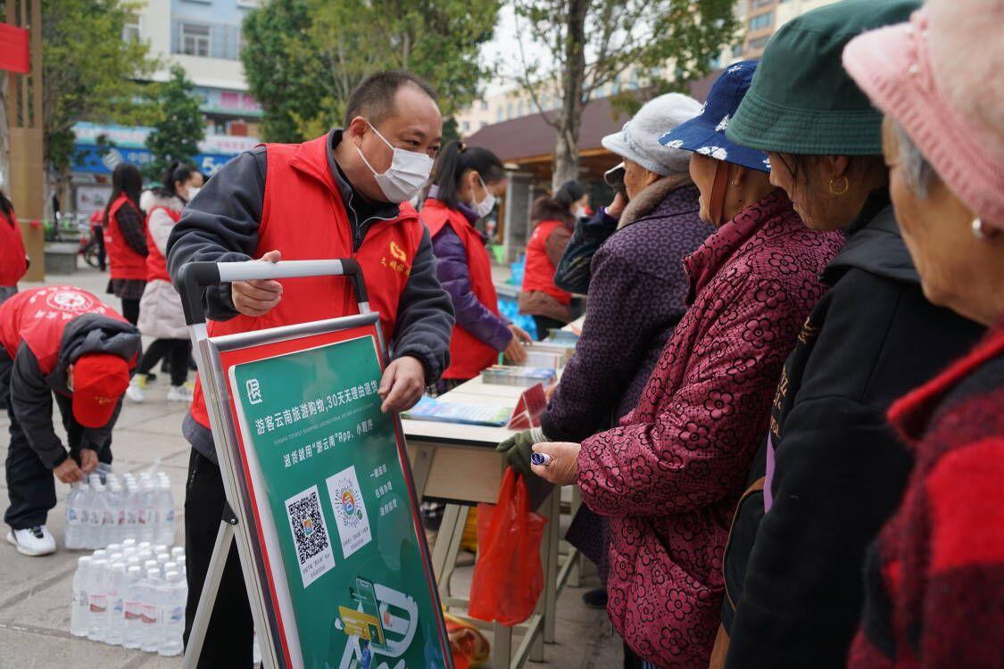 活动现场,文旅志愿者们积极为群众提供文明旅游宣传册、宣传“30天无理由退货”,引导群众申领“新健康码”。同时,志愿者们还向来往市民进行健康知识宣传、普法宣传、创建文明城市知识宣传等志愿服务,并发放了口罩和宣传材料,叮嘱市民要做好疫情防控措施。